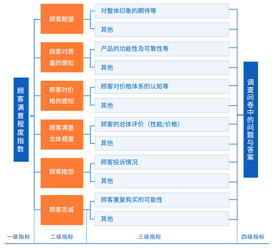 滿意度研究指標的四個層次如下圖表示。